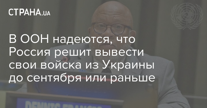 Председатель Генеральной Ассамблеи ООН Дэннис Фрэнсис надеется, что Россия решит вывести войска из Украины до сентября текущего года или раньше.