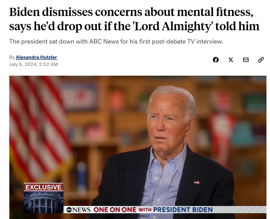 Президент США Джо Байден дал первое интервью после провальных дебатов с Дональдом Трампом.