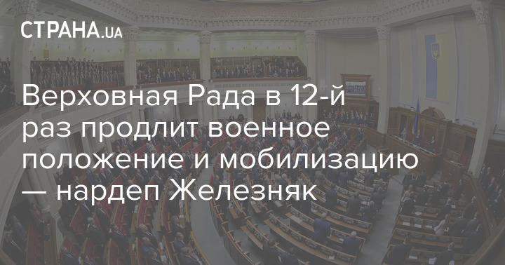 Верховная Рада в 12-й раз продлит военное положение и мобилизацию — нардеп Железняк