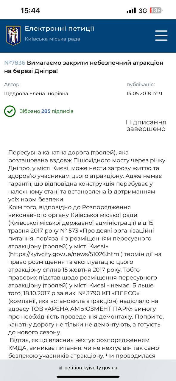 Отметим, что на сайте КГГА была петиция в 2018 году запретить аттракцион через Днепр, так как он может нести угрозу жизни участникам.