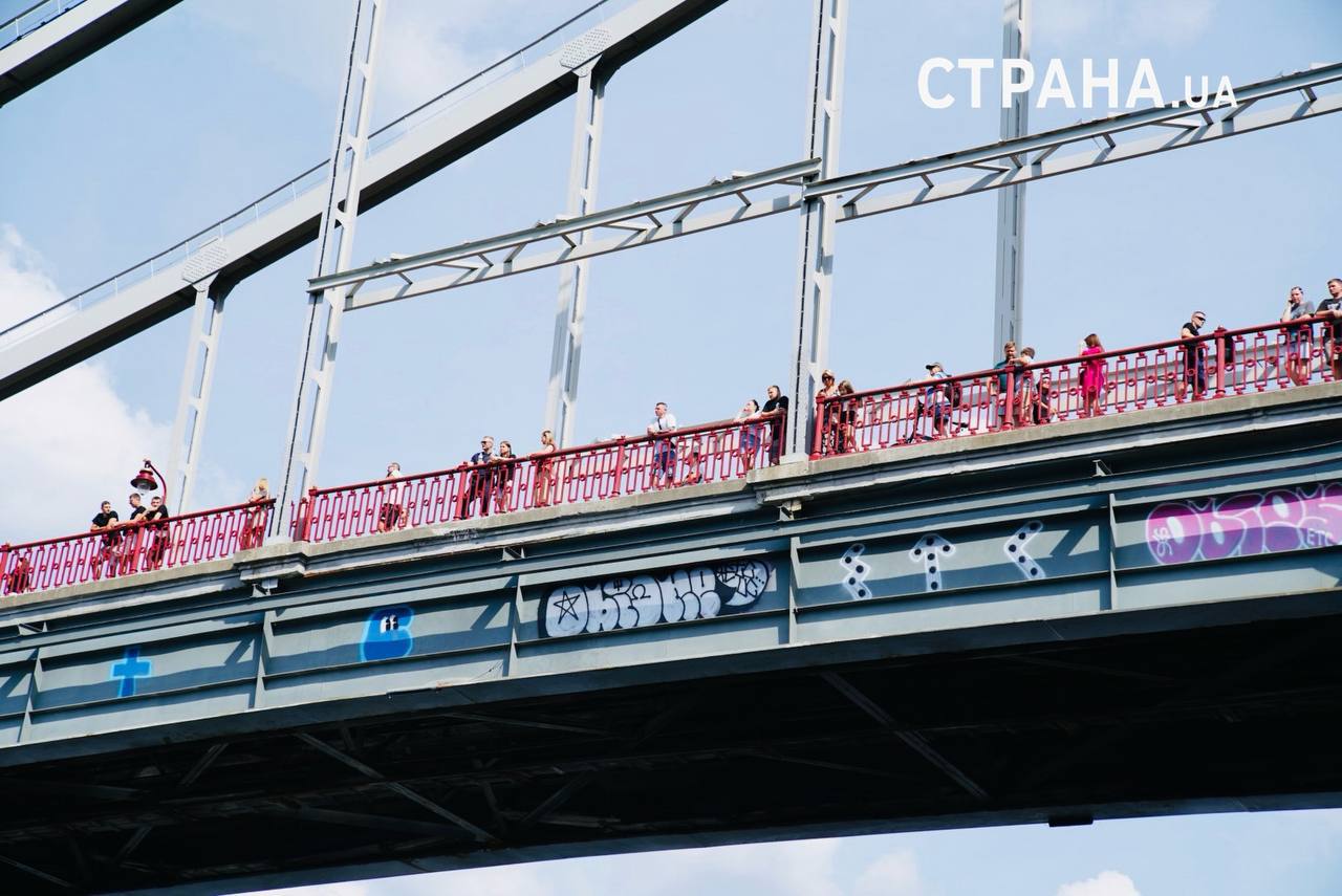 За происходящим с Паркового моста и на набережной наблюдает большое количество людей.