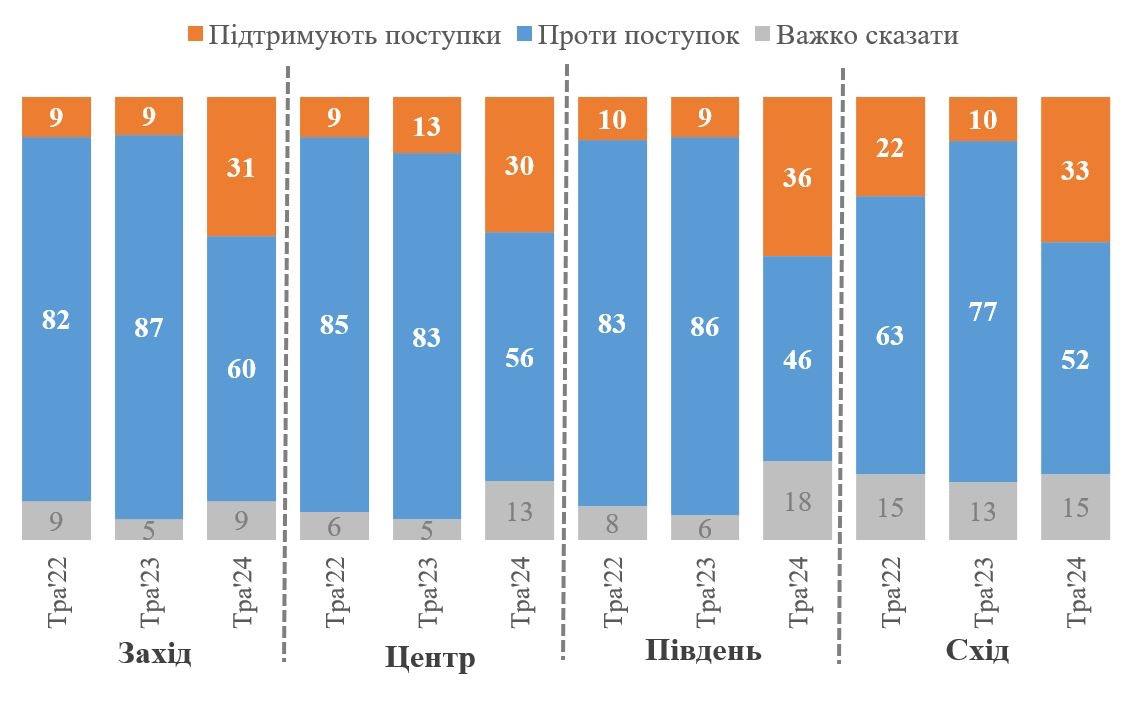 10.59 Доля украинцев, согласных отказаться от территорий ради окончания войны, за год возросла в три раза.