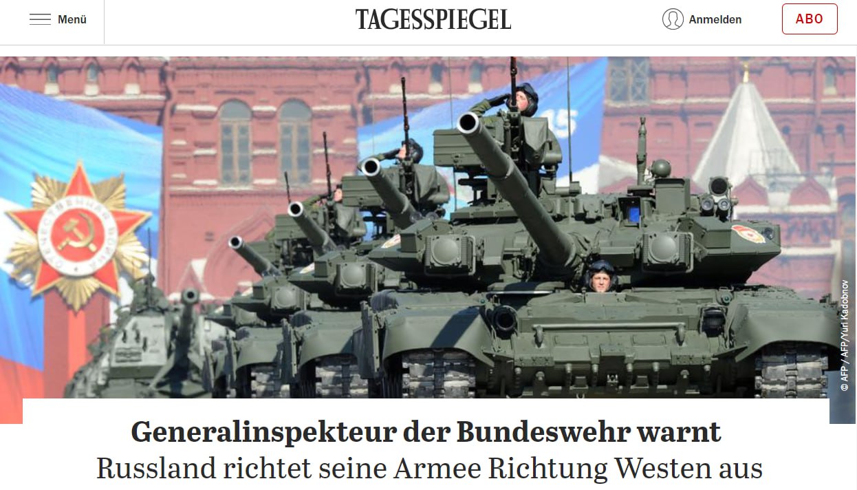 "Русская армия ежегодно прибавляет от 1000 до 1500 дополнительных танков. Пять крупнейших европейских государств-членов НАТО имеют только половину из них на складе", – сказал Карстен Бройер.