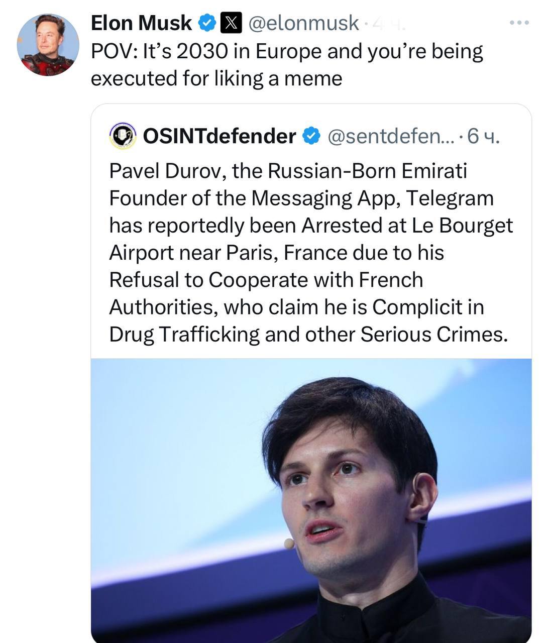 "В Европе наступил 2030 год, и вас казнят за лайк мема", - написал в Х Илон Маск.