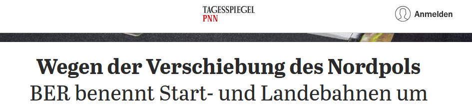 В Берлине переименовали взлетно-посадочные полосы аэропорта Бранденбург в результате смещения Северного магнитного полюса Земли.