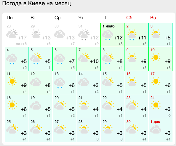 Прогноз погоды на ноябрь — в обзорном материале "Страны".