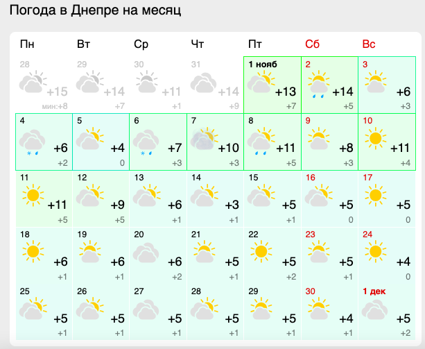 Жителям Днепра ноябрь тоже принесет небольшие дожди.