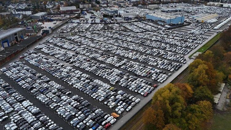 На логистической площадке CAT Automobillogistik в Эссене скопилось около шести тысяч новых непроданных автомобилей. Дорогие модели Volkswagen, Audi и электрокары стоят по полгода, некоторые даже больше года.