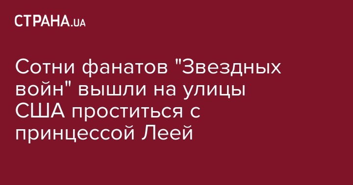 В США после известия о смерти Кэрри Фишер, сыгравшей принцессу Лею, сотни фанатов киносаги "Звездные войны" вышли на улицы, чтобы почтить ее память. Об этом сообщает "Медуза".