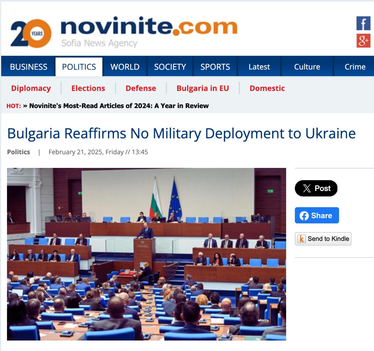 В декабре 2024 года премьер Болгарии в последний момент отказался подписывать соглашение о сотрудничестве с Украиной в сфере безопасности.
