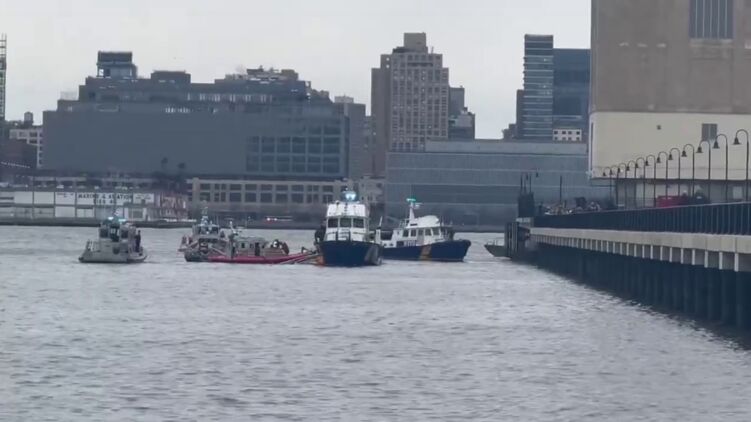 Вертолет по неизвестным причинам потерял управление и упал в реку Гудзон.