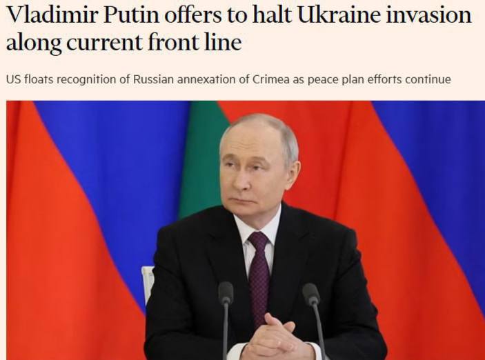 По данным издания, 11 апреля Владимир Путин во время встречи со спецпосланником президента США Дональда Трампа Стивом Уиткоффом предложил ему заморозить боевые действия по нынешней линии фронта.