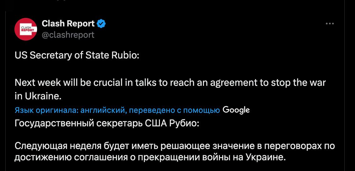 На днях Рубио заявил, что администрация США показала Украине и России "финишную прямую" на пути к миру, но теперь обе стороны должны согласиться.