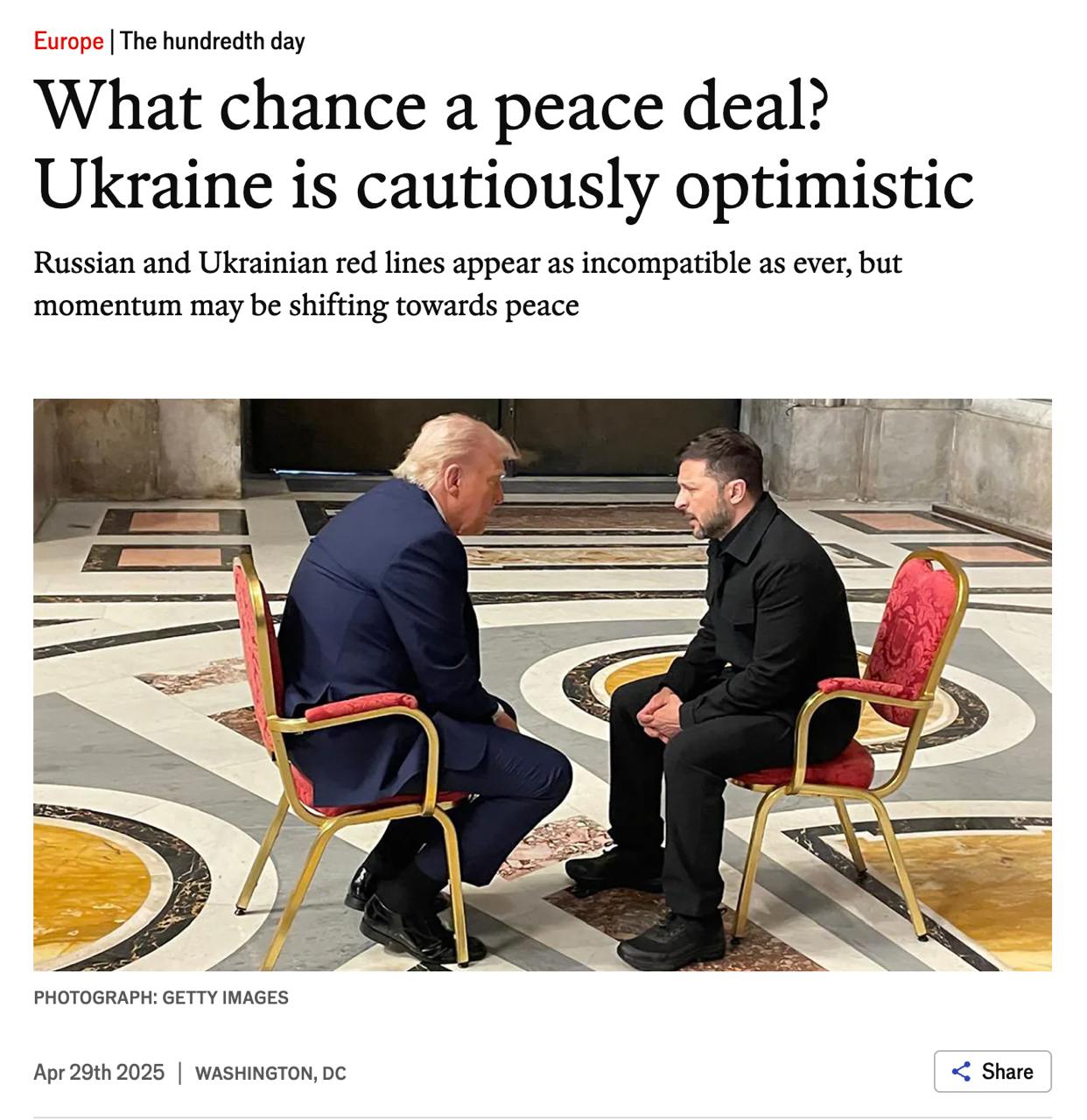 В Риме Зеленский убеждал Трампа не выходить из мирного процесса - The Economist