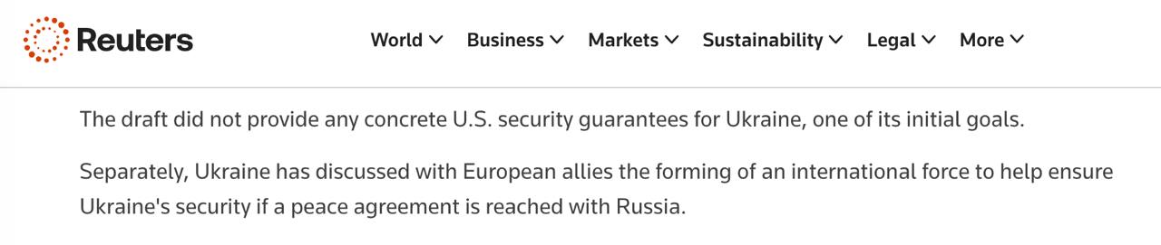 Позже издание Reuters подтвердило наше предположение, что в сделке нет гарантий безопасности для Украины. Издание напоминает, что именно такие гарантии были одной из первоначальных целей соглашения для Украины.