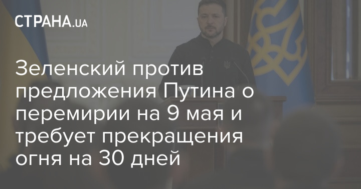 Президент Украины Владимир Зеленский отверг предложение российского лидера Владимира Путина о трехдневном перемирии на 9 мая и настаивает на прекращении огня на 30 дней.