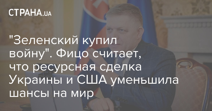 Премьер-министр Словакии Роберт Фицо считает, что заключение сырьевой сделки между Киевом и Вашингтоном уменьшило шансы на мирное урегулирование российско-украинского конфликта.