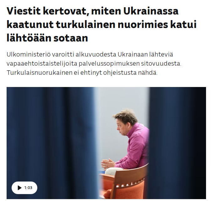 В Украине погиб воевавший на стороне ВСУ сын финского правого политика
