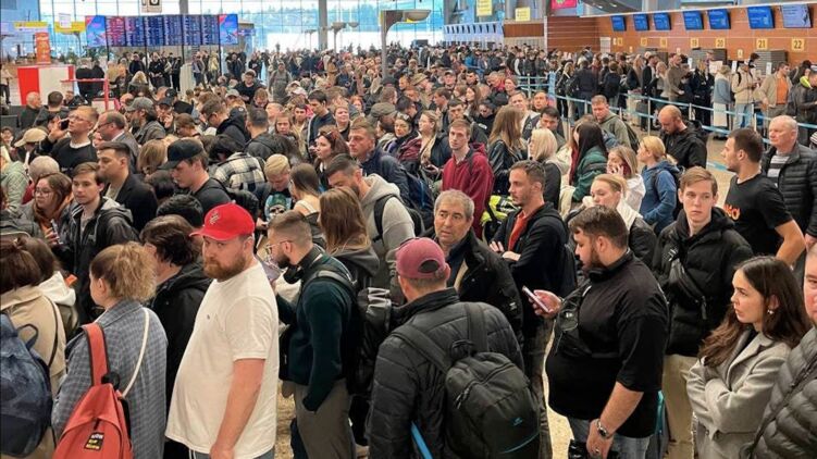 В российских аэропортах из-за налета дронов на Москву продолжается коллапс. По данным Ассоциации туроператоров РФ, в стране минимум 60 тысяч человек столкнулись с отменой и задержками 350 авиарейсов.