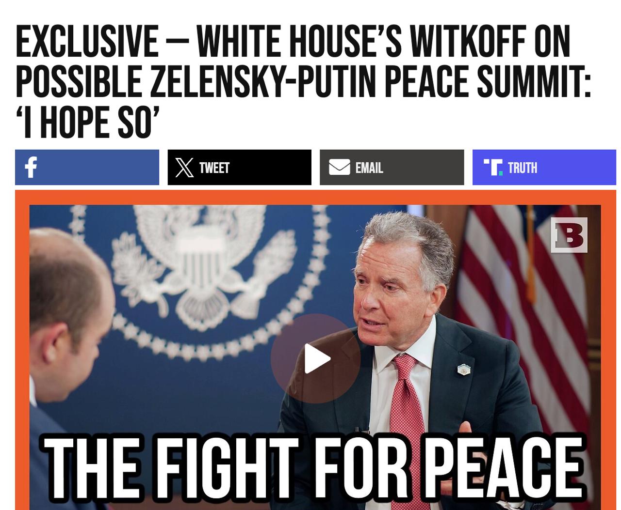 Об этом в интервью Breitbart News сообщил спецпредставитель Трампа Стивен Уиткофф. Интервью было записано в четверг, то есть ещё до призыва президента Украины Владимира Зеленского и европейцев к 30-дневному перемирию и решения о переговорах в Стамбуле 15 мая.