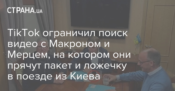 TikTok ограничил поиск видео с Макроном и Мерцем, на котором они прячут пакет и ложечку в поезде из Киева