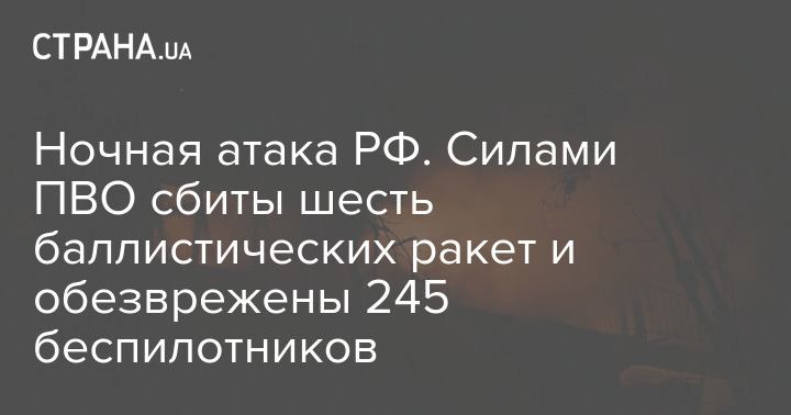 По состоянию на утро противовоздушной обороной сбито 6 баллистических ракет Искандер-М/KN-23 (Киев) и обезврежено 245 враждебных БПЛА типа на востоке, севере, юге и в центре страны.