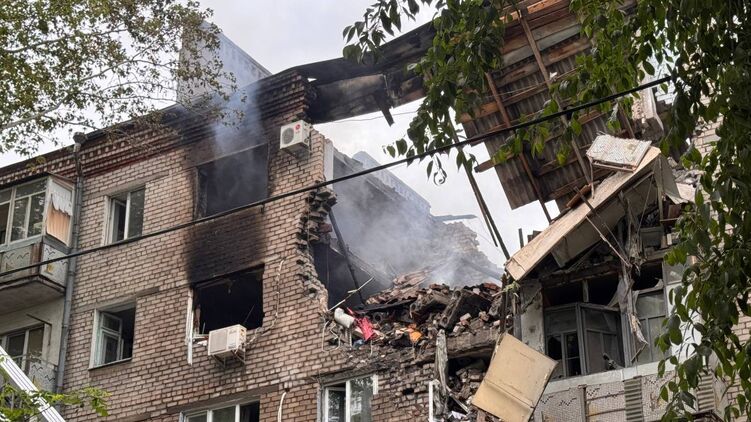 Разрушены два этажа, другие – повреждены. Из-под завалов спасены две женщины, одна госпитализирована в тяжелом состоянии.