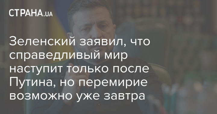 "Мы обязательно обретем справедливый мир, вероятно, только после Путина. Но мир, который начинается с перемирия и затем постепенно приводит к прочному миру, этот мир может начаться уже завтра", - сказал Зеленский.