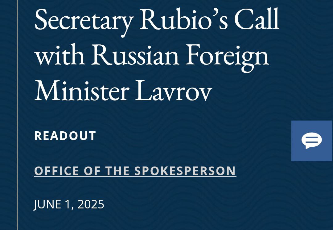 "Госсекретарь Марко Рубио по просьбе России поговорил с министром иностранных дел России Лавровым. Госсекретарь Рубио повторил призыв президента Трампа к продолжению прямых переговоров между Россией и Украиной для достижения прочного мира", - говорится в сообщении Госдепа.
