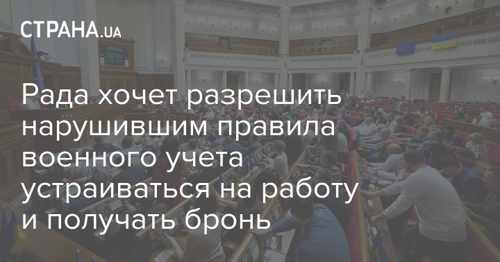 В Верховной Раде депутаты предлагают разрешить нарушившим правила военного учета украинцам устраиваться на работу и получать бронь.