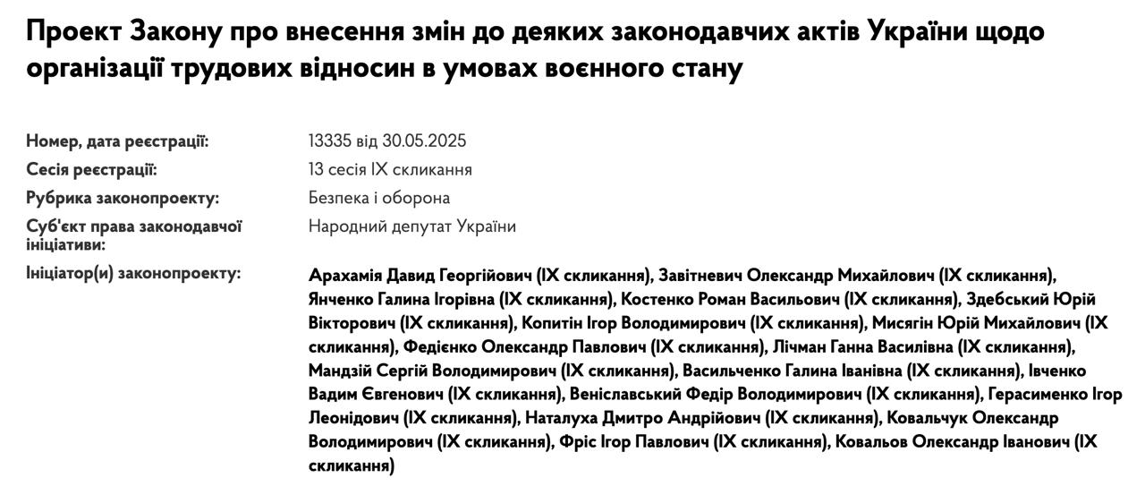 Соответствующий законопроект №13 335 внесла группа депутатов.  Во главе с главой фракции "Слуга народа" Давидом Арахамией, а также главой оборонного комитета Александром Завитневичем.