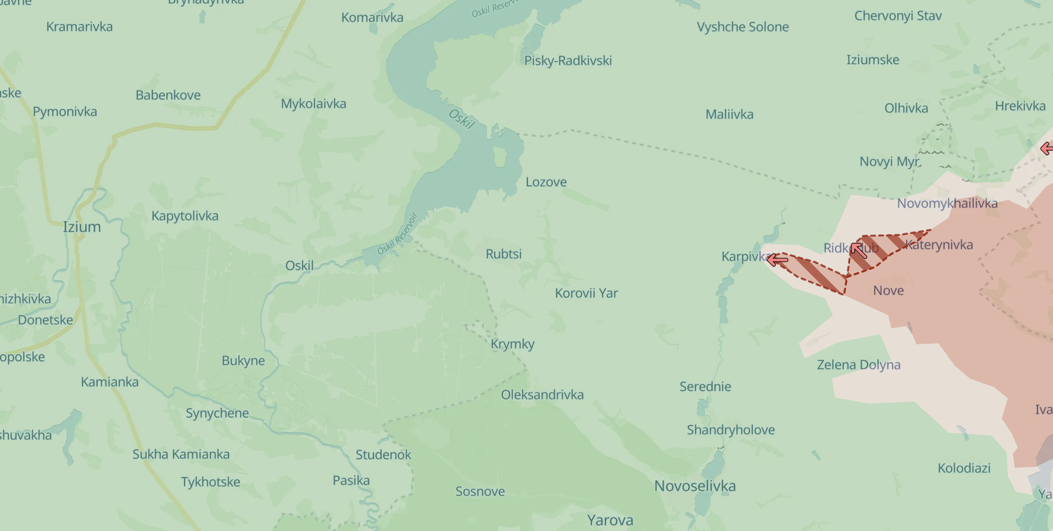 В Харьковской области россияне продвинулись к реке Оскол в направлении Изюма - в районе Редкодуба и Карповки. Продвижение там составило порядка пяти километров.