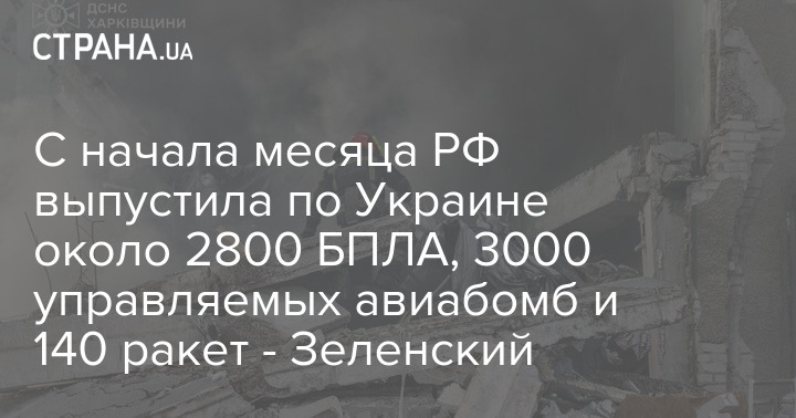 С начала месяца РФ выпустила по Украине около 2800 БПЛА, 3000 управляемых авиабомб и 140 ракет - Зеленский