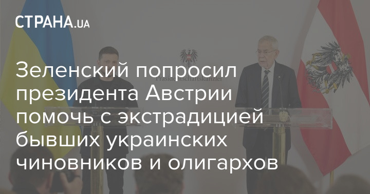Президент Украины Владимир Зеленский попросил австрийского президента Александра ван дер Беллена посодействовать экстрадиции "бывших украинских чиновников и олигархов".