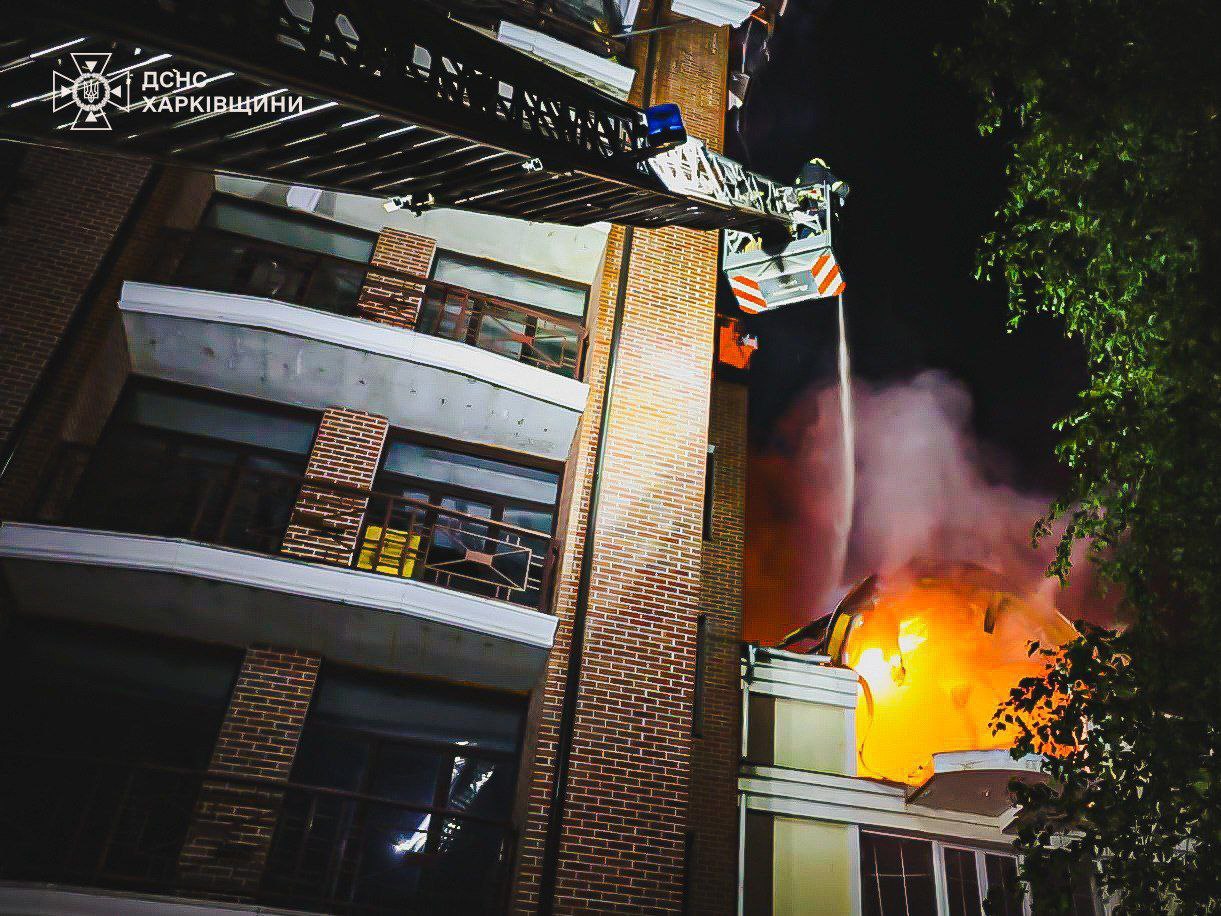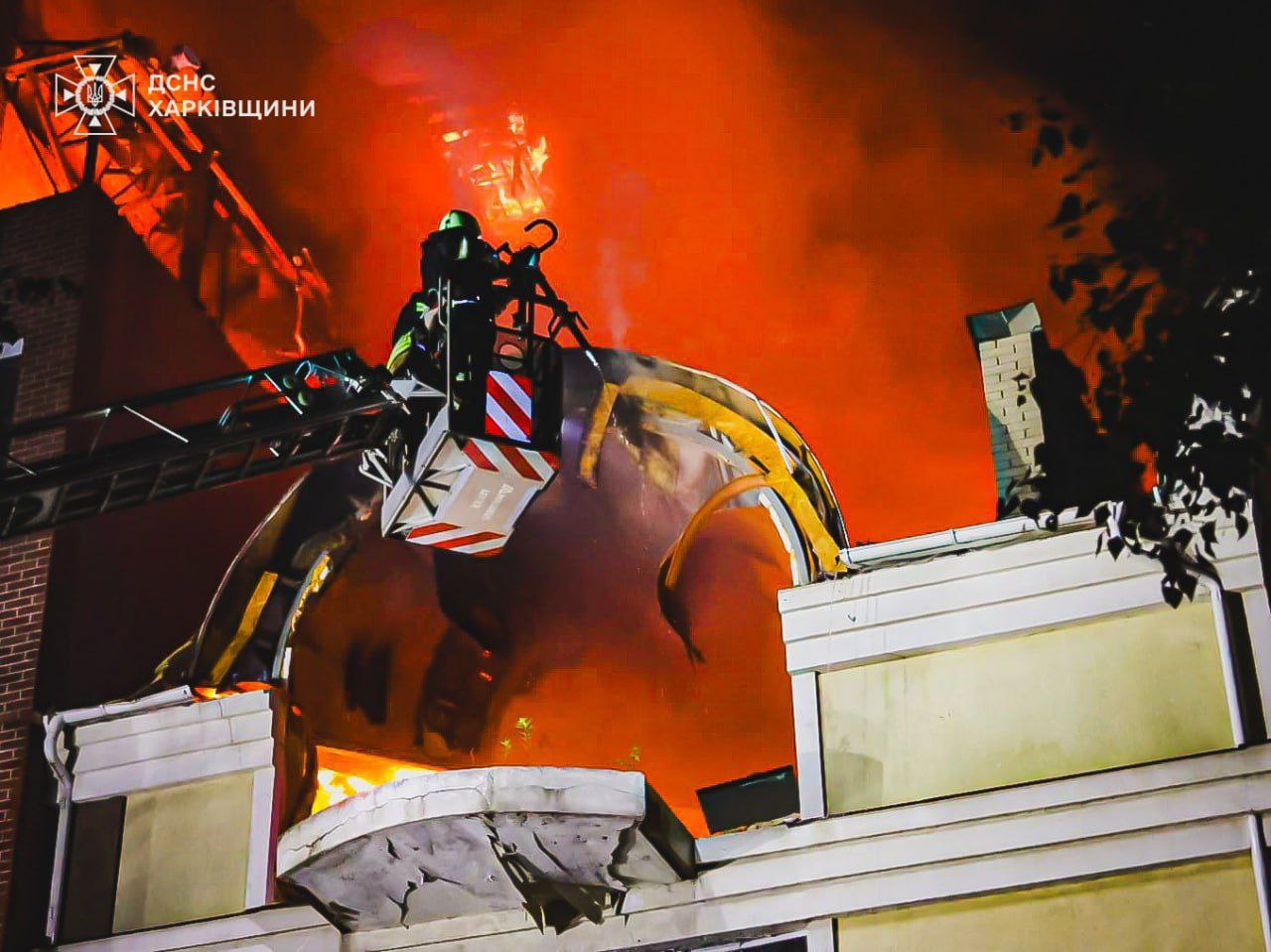 Зафиксировано более 10 попаданий, возникли масштабные пожары. Загорелся 4-этажный жилой дом.