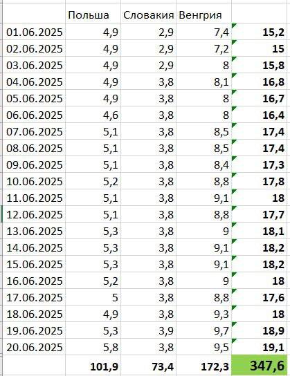 По информации регулятора, более 2/3 указанного объема поступило из Венгрии и Словакии, остальная часть - из Польши.