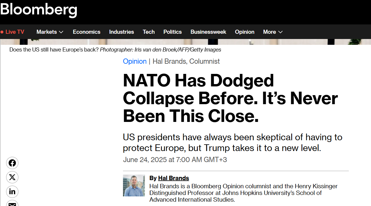 Также The New York Times написала о настроениях в НАТО накануне саммита в Гааге.