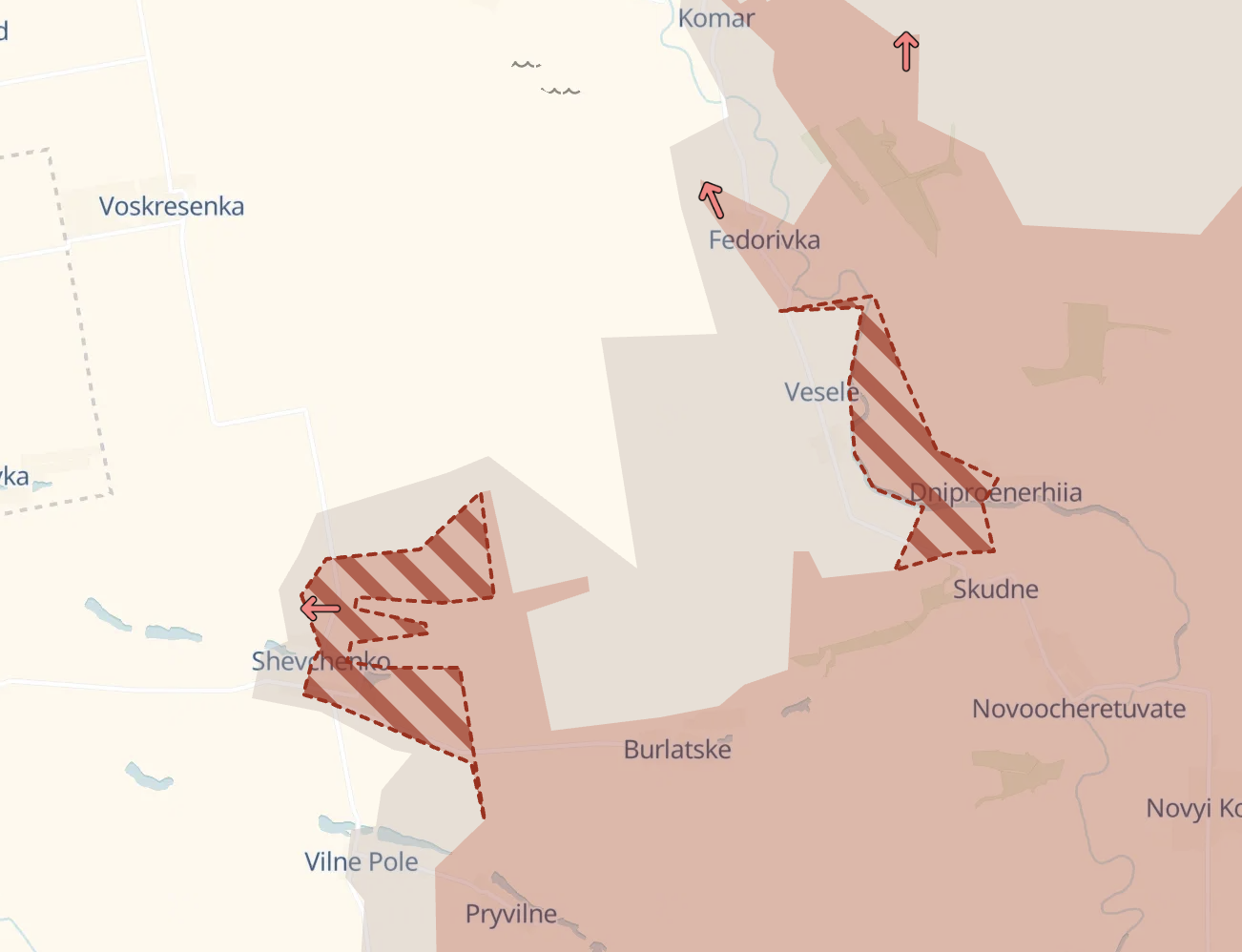 Южнее россияне продвинулись в районе Днепроэнергии и Шевченко, где активное наступление идет уже несколько дней подряд. Тут тяже россияне постепенно приближаются к границе с Днепропетровской и Запорожской областями. Отметим, что в направлении Днепра и Запорожья сейчас россияне продвигаются наиболее активно, в то время как на других направлениях темпы их продвижения снизились. А в Сумской области, куда ВСУ перекинули резервы, оно вообще остановилось (это заявляет Украина и подтверждают российские паблики).