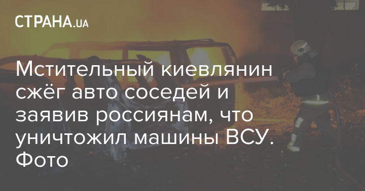 Мстительный киевлянин сжёг авто соседей и заявив россиянам, что уничтожил машины ВСУ. Фото