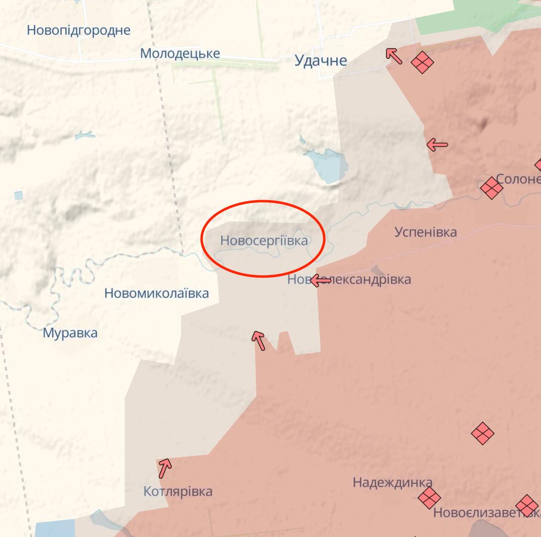 В то же время минобороны РФ заявляет о захвате села Шевченко, а также Новосергеевки, что также у границы с Днепропетровской областью, но ближе к Покровску. Потерю Новосергеевки подтверждает боец ВСУ с позывным Мучной.
