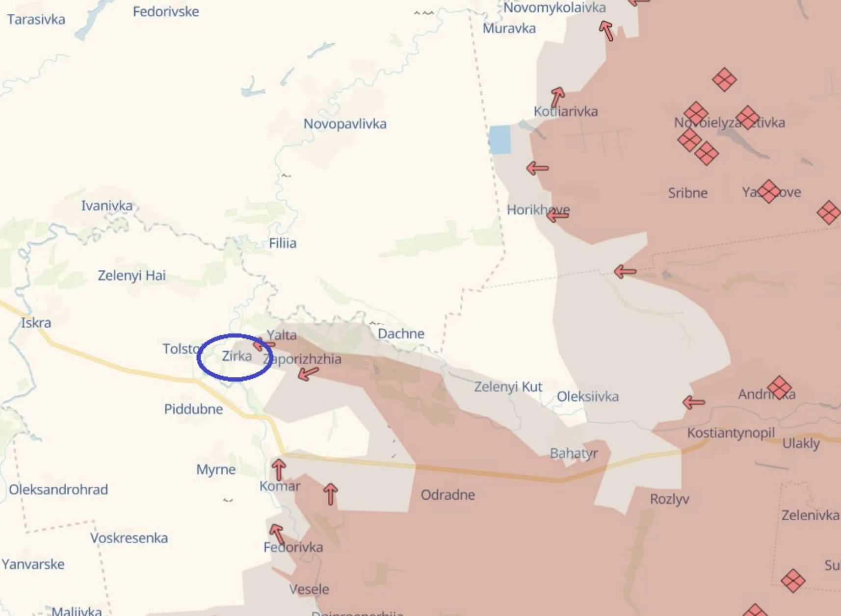 12:47 Минобороны РФ заявляет о захвате российской армией села Зирка на Западе Донецкой области, вблизи границы с Днепропетровской.