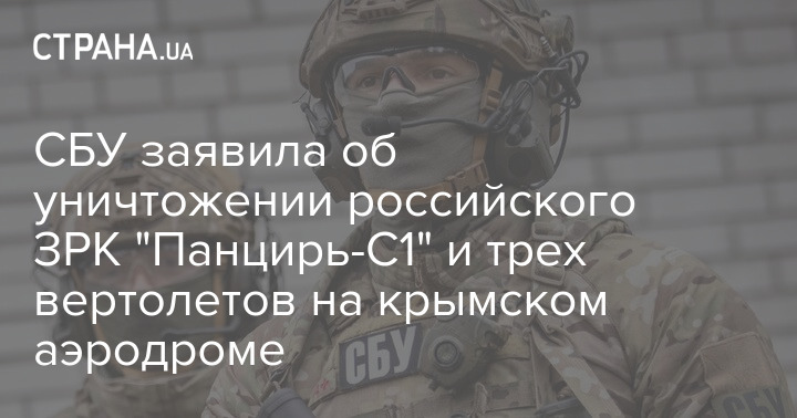 Служба безопасности Украины заявляет об уничтожении российского ЗГРК "Панцирь-С1" и трех вертолетов на крымском аэродроме "Кировское".