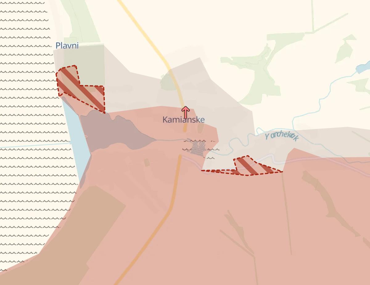 По данным паблика, россияне заняли новые позиции юго-восточнее Каменского, а также на берегу Каховского водохранилища.