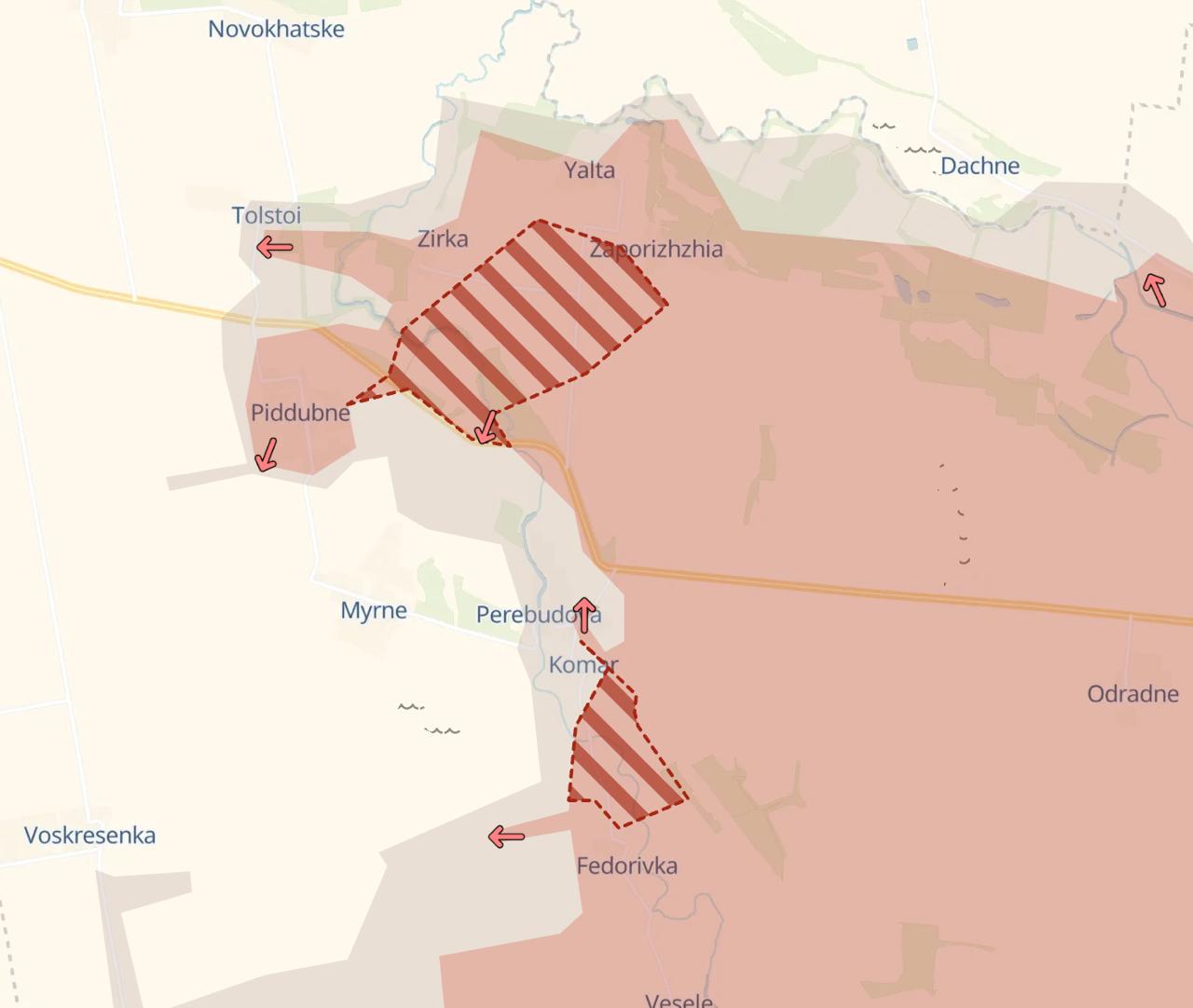 Также РФ продвинулась у границ Днепропетровской области - в районе Поддубного и по линии Комар-Федоровка.