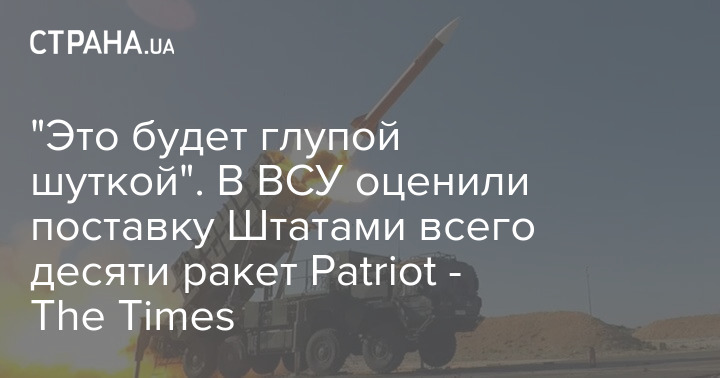 Если США отправят Украине только 10 ракет-перехватчиков Patriot, "это будет просто глупой шуткой", поскольку их не хватит даже для одного боя.