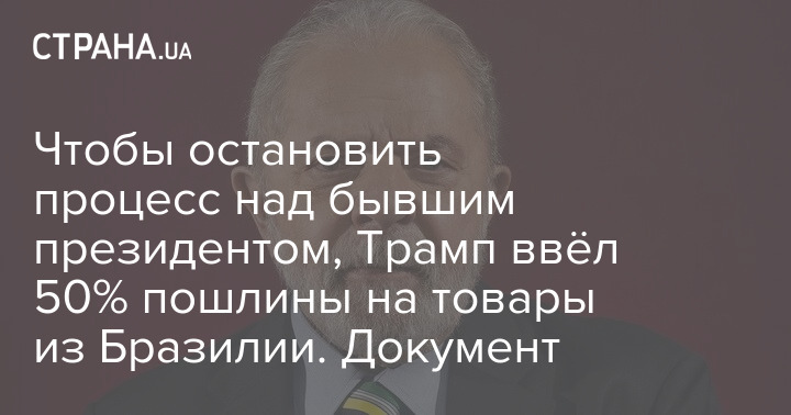 Чтобы остановить процесс над бывшим президентом, Трамп ввёл 50% пошлины на товары из Бразилии. Документ