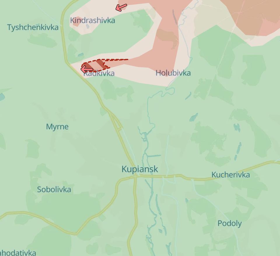 Также обнаружено продвижение российских отрядов к северу от Купянска.