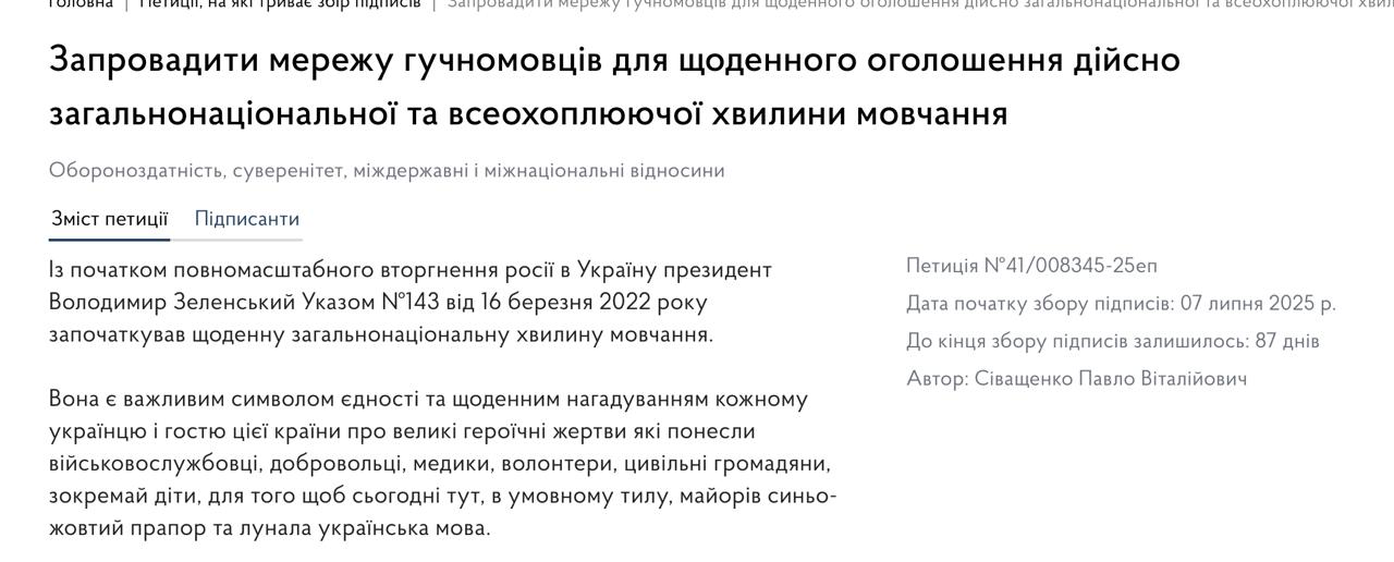 В Кабинет министров подали петицию с требованием установить по всей стране громкоговорители для ежедневного объявления общенациональной минуты молчания.