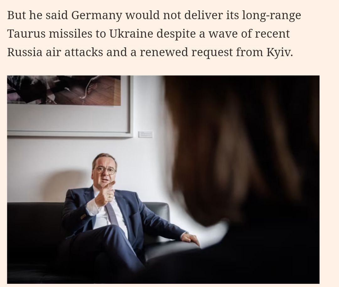 Об этом заявил министр обороны Германии Борис Писториус в интервью газете Financial Times.