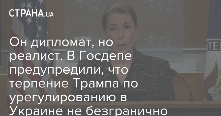 Терпение президента США Дональда Трампа в вопросе украинского урегулирования не безгранично, заявила глава пресс-службы Госдепартамента США Тэмми Брюс на регулярном брифинге для журналистов внешнеполитического пула.